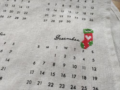 セリアのファブリックカレンダー(2026)にクロスステッチをしています。